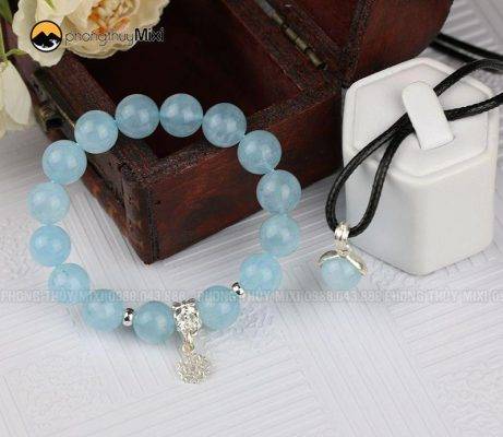 Vòng tay đá Aquamarine mix bạc ta 999.